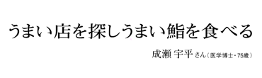 「カツオもね、戻りガツオを食べる風習はなかったと思う。活きがよくてさっぱりした初ものを好んだ。でも鮨は結局、ネタとシャリのバランス、そして握りたてであること。できれば30秒以内がいい。だからカウンターで食べるとうまいんだろうね。せっかく食べるんだから、うまい店を探して食べることが肝心。うまいと感じると唾液の分泌が盛んになり、消化もよくなる」