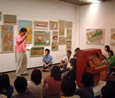 「誕生日が1〜6月、7〜12月の二手に分かれてください。友達、恋人、親子、離れてくださいね」。日比野さんが笑わせる。2時間。精力的なギャラリートークが始まった。