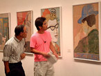 人数がかなり多い。150人はいる。「一度には無理ですね」。学芸員の植田さんが言っている。しかし、日比野さんはどうしても作品の前で話をしたい、という。苦肉の策として2組に分かれてのギャラリートークとなった。