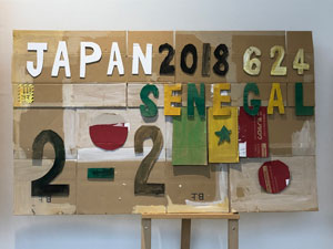 ワールドカップ2018年ロシア大会で、日本が戦った試合をテーマに公開制作した。場所は金沢21世紀美術館で、7月7日に行った。この日は「起点としての80年代展」という展覧会の初日で、19人の作家(中原浩大、宮島達男、森村泰昌、大竹伸朗、船越桂などノ)の80年代アートシーンを振り返るものであった。私の出品作品の中のひとつに「PRESENTS