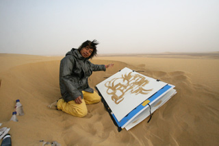 日比野は「HからAへ移動した時に起こること。」というタイトルで、エジプトや南米など遠くへ移動した際に現地で描いた作品を初めて展示します。