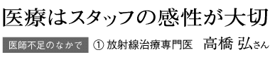 放射線科の医師は大きく3分野にわかれる。診断、放射線治療、それに核医学・治療。放射線治療専門医はその3つがすべてできる。いわきにはいま、診断のできる医師は数人いるが、治療や核医学のできる医師は高橋さんしかいない。