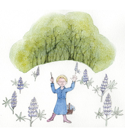 『世界をもっとうつくしく』は女性の生き方だけではなく、続いてきたいのちの輪、みんながいてのわたしという存在も意識させる。最後のページには、いちめんのルピナスを背にたたずむバーバラが描かれている。