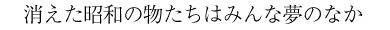 新聞の月刊誌の広告欄に、じぶんの箪笥の引きだしをあけるとこぼれ落ちてきそうな、蚊帳、縁側、ちゃぶ台、押入れ、といった言葉の群れを見つけた。「消えた『昭和』」という企画のなかで作家たちが思いの丈を述べた、いまでは何処かへいってしまったり、いまはない物たちの名前である。